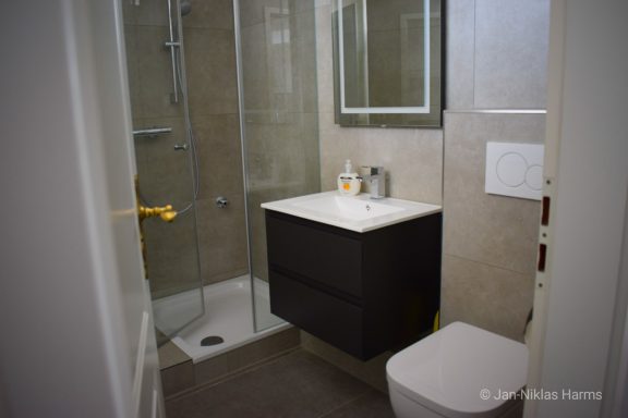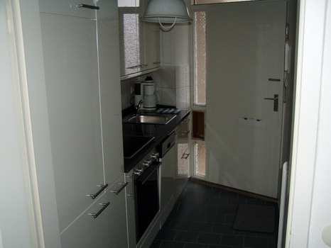 Ausser dem Bad (Dusche/WC) befindet sich eine kleine Küche in dem Appartement. Diese ist wie folgt ausgestattet: Einbauküche mit Geschirrspüler, Kaffeemaschine, Wasserkocher usw.