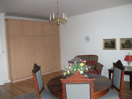 Der im Februar 2010 renovierte und mit neuem Parkett ausgelegte kombinierte Wohn- und Schlafraum bietet ausser einem neuem Schrankbett, Sat-TV, Radio, bei Bedarf ein Kartenhandy und vom dazu gehörigen Balkon, einen traumhaften Ausblick auf die Ostsee.